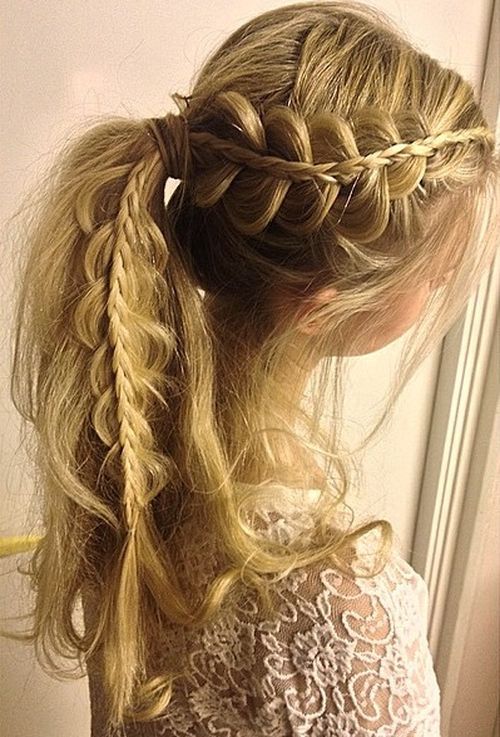 This super detailed ponytail might look quite impossible for the average person to style, but it is, in fact, surprisingly simple to achieve. It works by weaving one thin braid into a larger, slightly scruffy one with loose flyaways. The final result is a hairstyle that resembles adorable love hearts.
