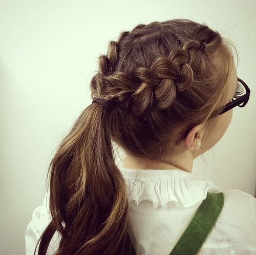 As if a French braided ponytail wasn’t interesting enough, try flipping the look (literally) by braiding the hair on the underside of your head as opposed to the top. This reverse braid is a unique take on the trendy style that will look cool on any girl.